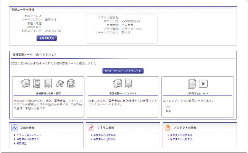 メディカルオンラインで取り扱っている文献、電子書籍、医薬品情報、医療機器情報に加え外部のWebサイト、Youtubeへのリンクを登録、管理できるツールです。