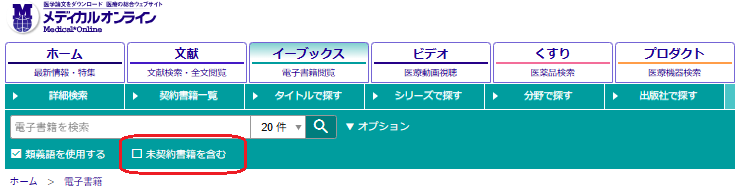 法人会員としてメディカルオンラインにログイン後、イーブックスにアクセスすると、契約済みの電子書籍が表示されます。