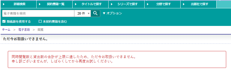 上記の場合は同時閲覧数の上限に達しているため閲覧できない状態(閲覧制限中)です。