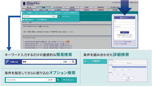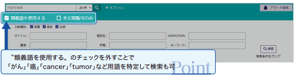 ※雑誌名等は完全一致検索となります 例)〇日本臨牀 / ×日本臨床 - オプション検索