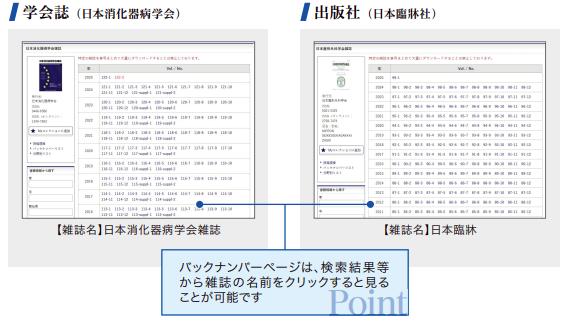 バックナンバーの一覧から配信中の巻号をご確認いただけます。