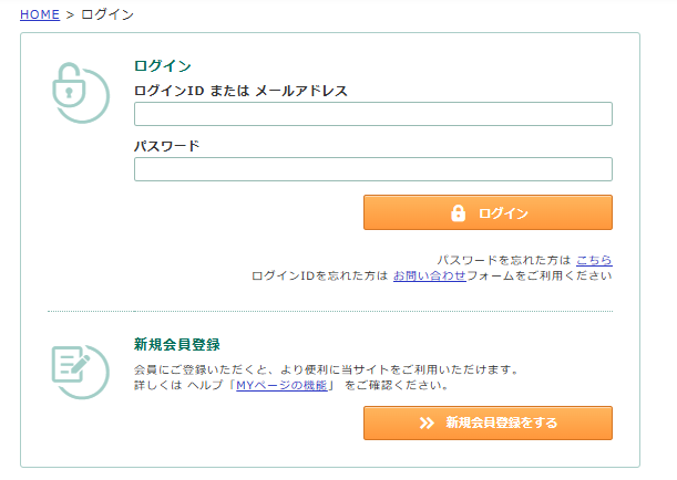 【3】会員のお客様の場合ーIDとパスワードを入力し、ログインください
