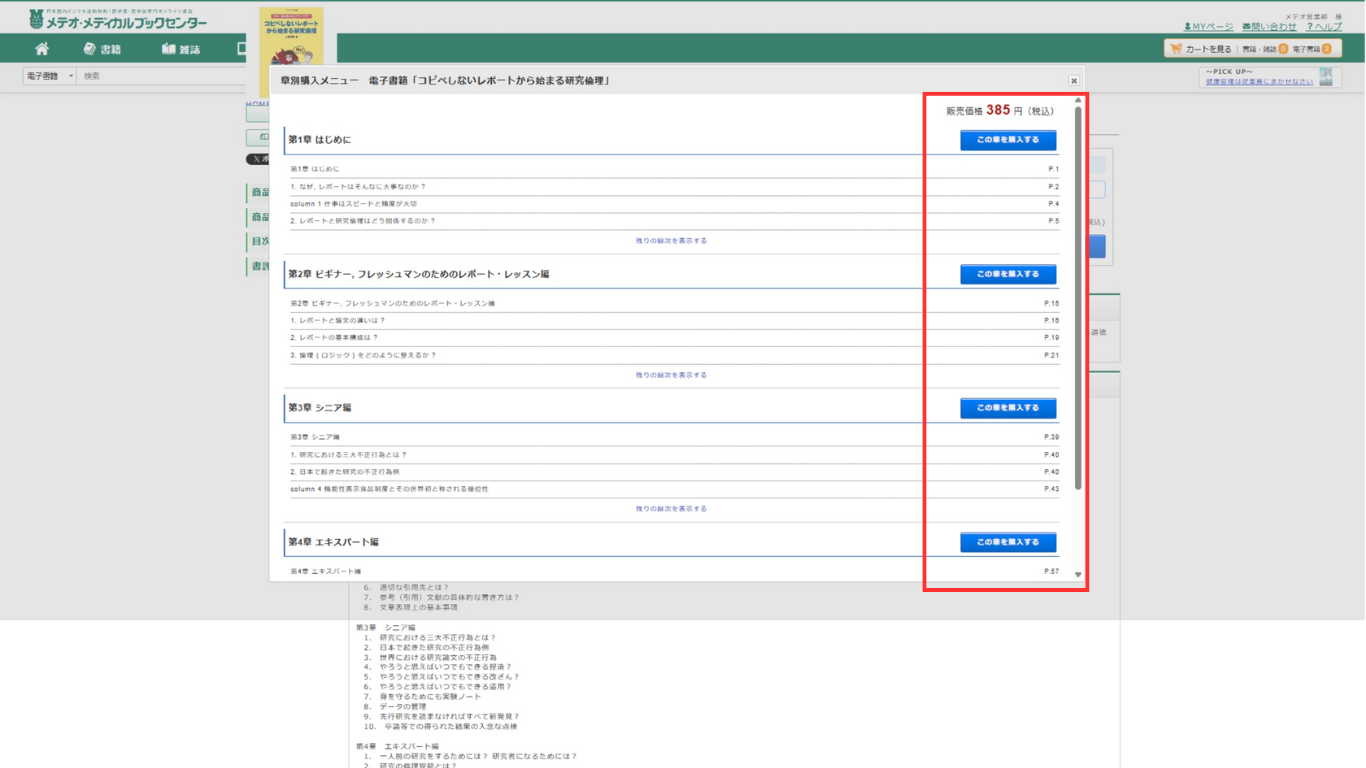 こちらをクリックすると、電子書籍の章別購入メニューが開きます。