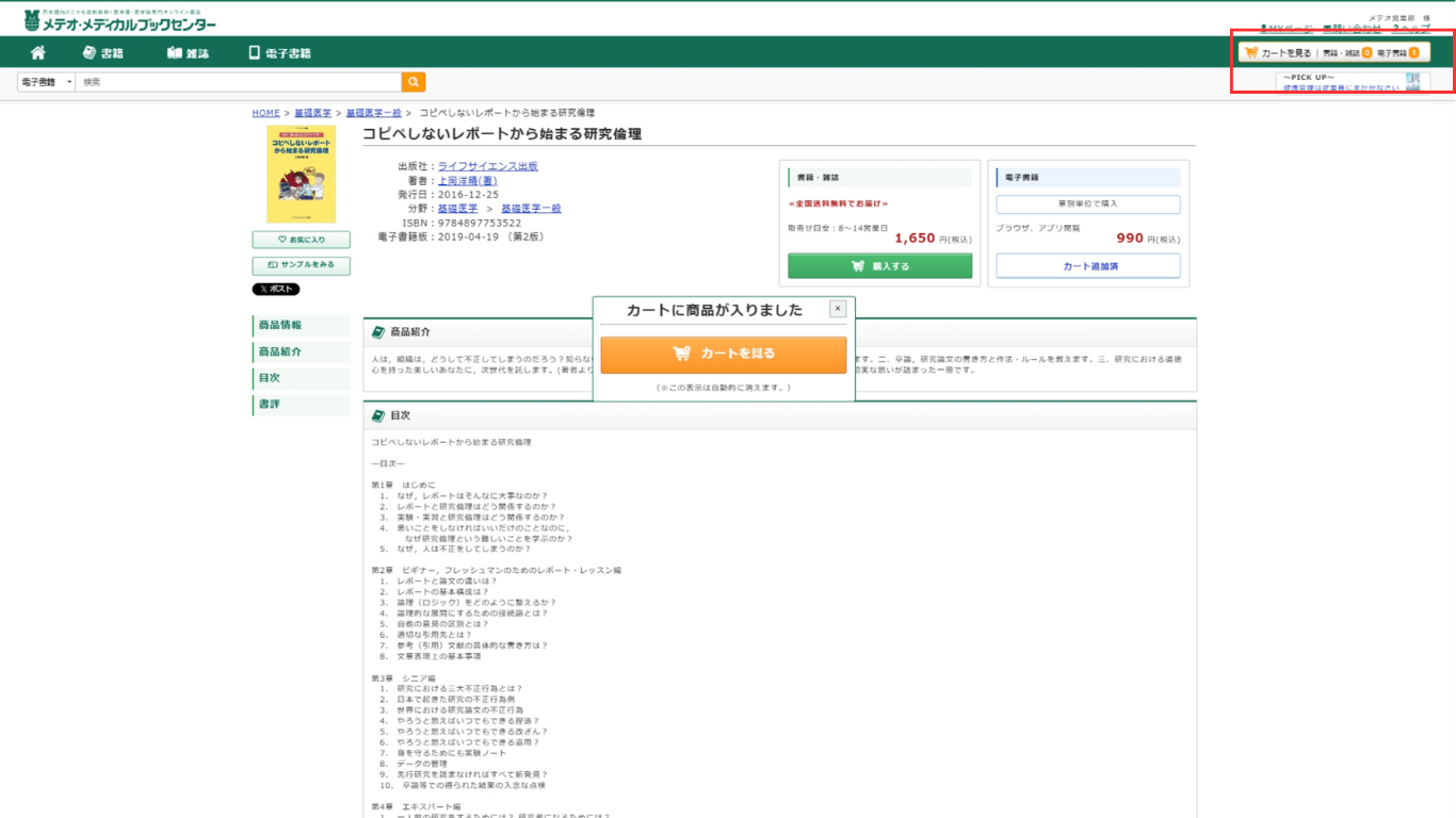 購入したい商品が決まりましたら、電子書籍のカートボックスにある「購入する」ボタンを押すと、商品がカートに入ります。