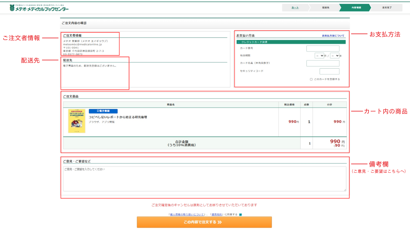 【4】ご注文内容の確認ー購入手続き前の最終画面で注文内容をご確認ください